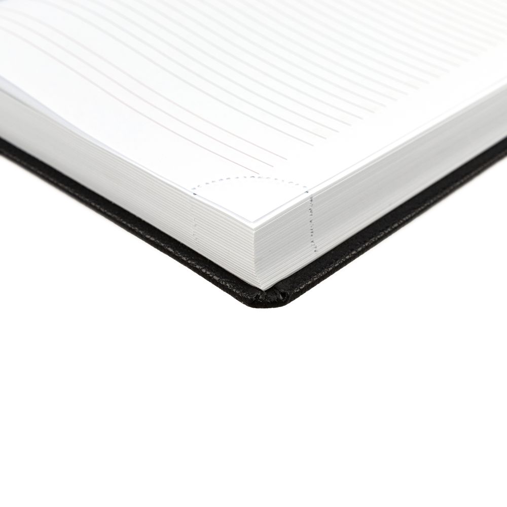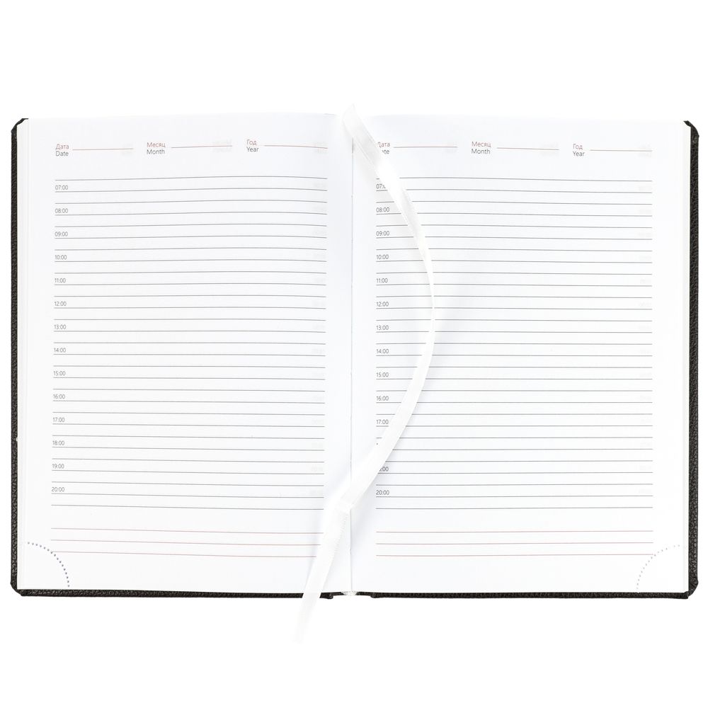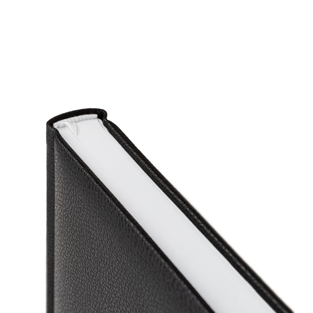 Ежедневник в твердой обложке c поролоном, выполнен из материала La Fite, черный АА, дополнен ляссе белого цвета.