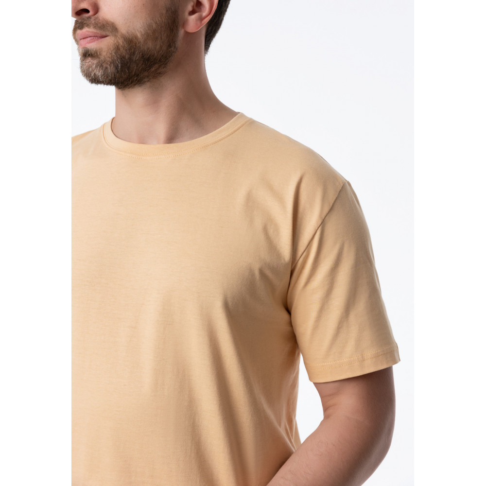 Футболка выполнена из гладкого трикотажного полотна – кулирная гладь. Материал обладает хорошей эластичностью и прочностью, отлично пропускает воздух и впитывает влагу.