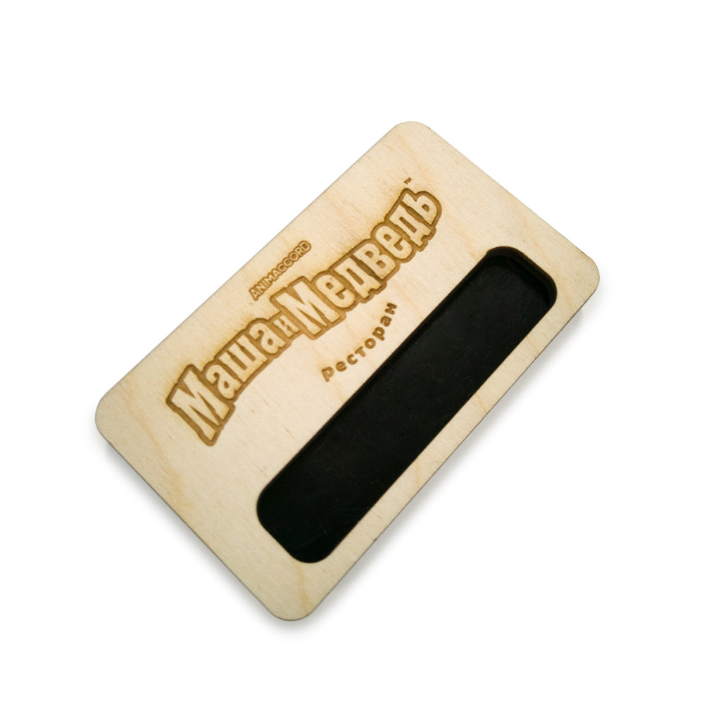 Метод нанесения изображения – лазерная гравировка. При гравировке по дереву на поверхности бейджа лазером выжигается изображение, которое приобретает темный цвет, от коричневого до почти черного.