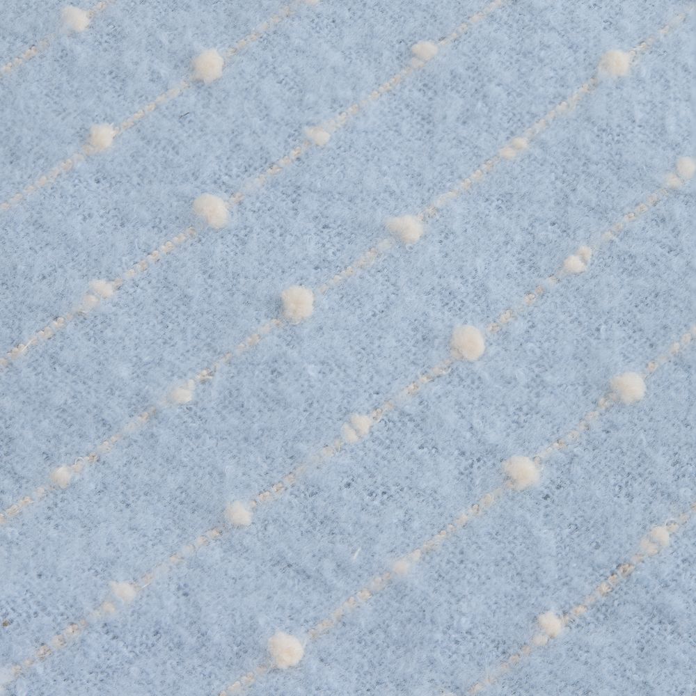 Изысканный плед небесно-голубого оттенка покоряет своим дизайном с первого взгляда. Особая текстура выпуклого узора в точку делает изделие не только визуально привлекательным, но и невероятно приятным на ощупь. Изящный пунктир, плавно переходящий на декоративную бахрому, придает пледу неповторимый шарм и элегантность.