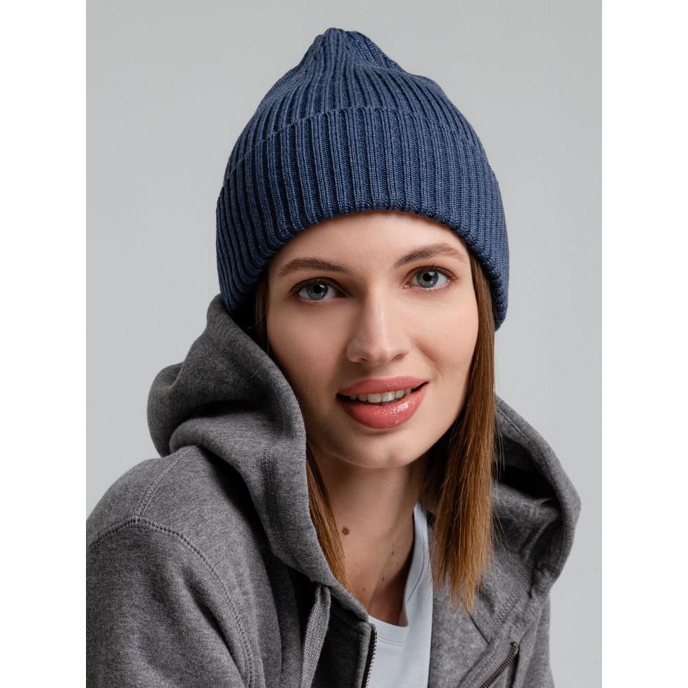 Однослойная шапка, выполненная резинкой 2x2.