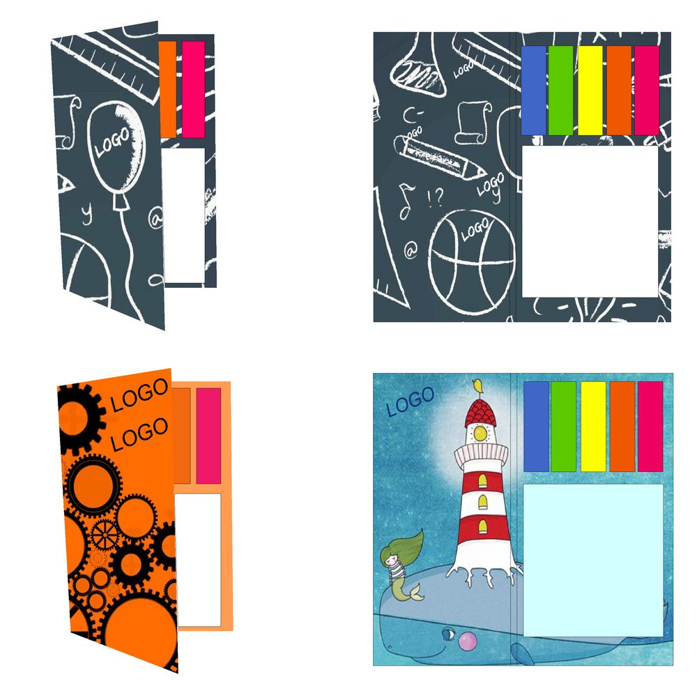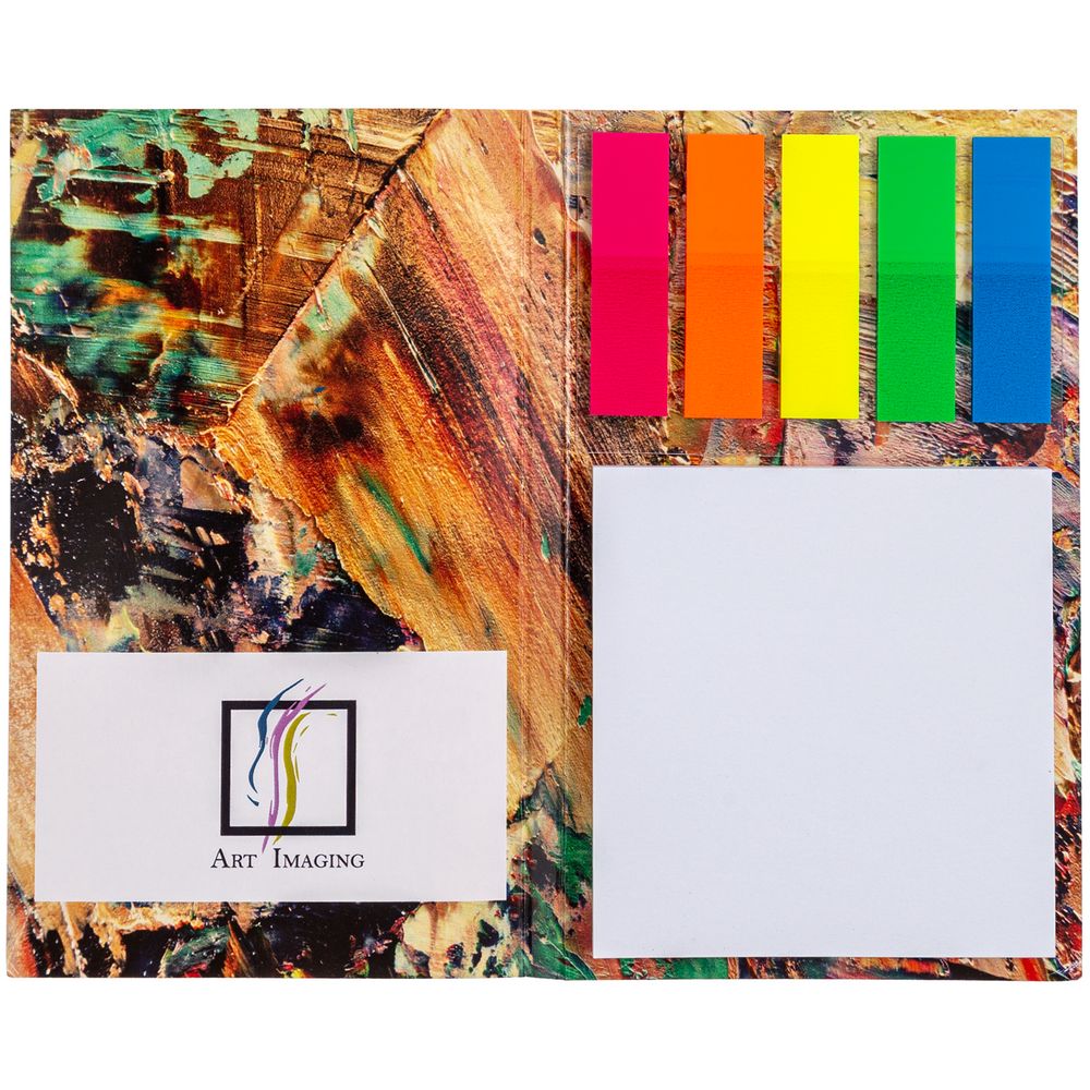 - Блок с клеевым слоем 7х7,5 см, 50 листов; пластиковые закладки 1,2х4,3 см, 5х25 листов.