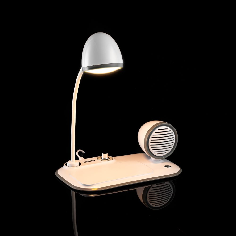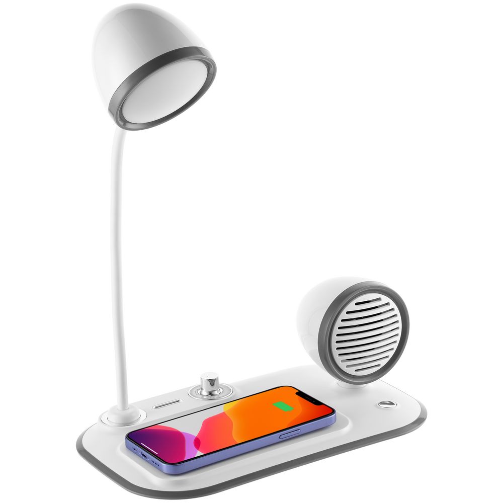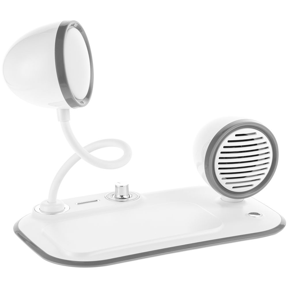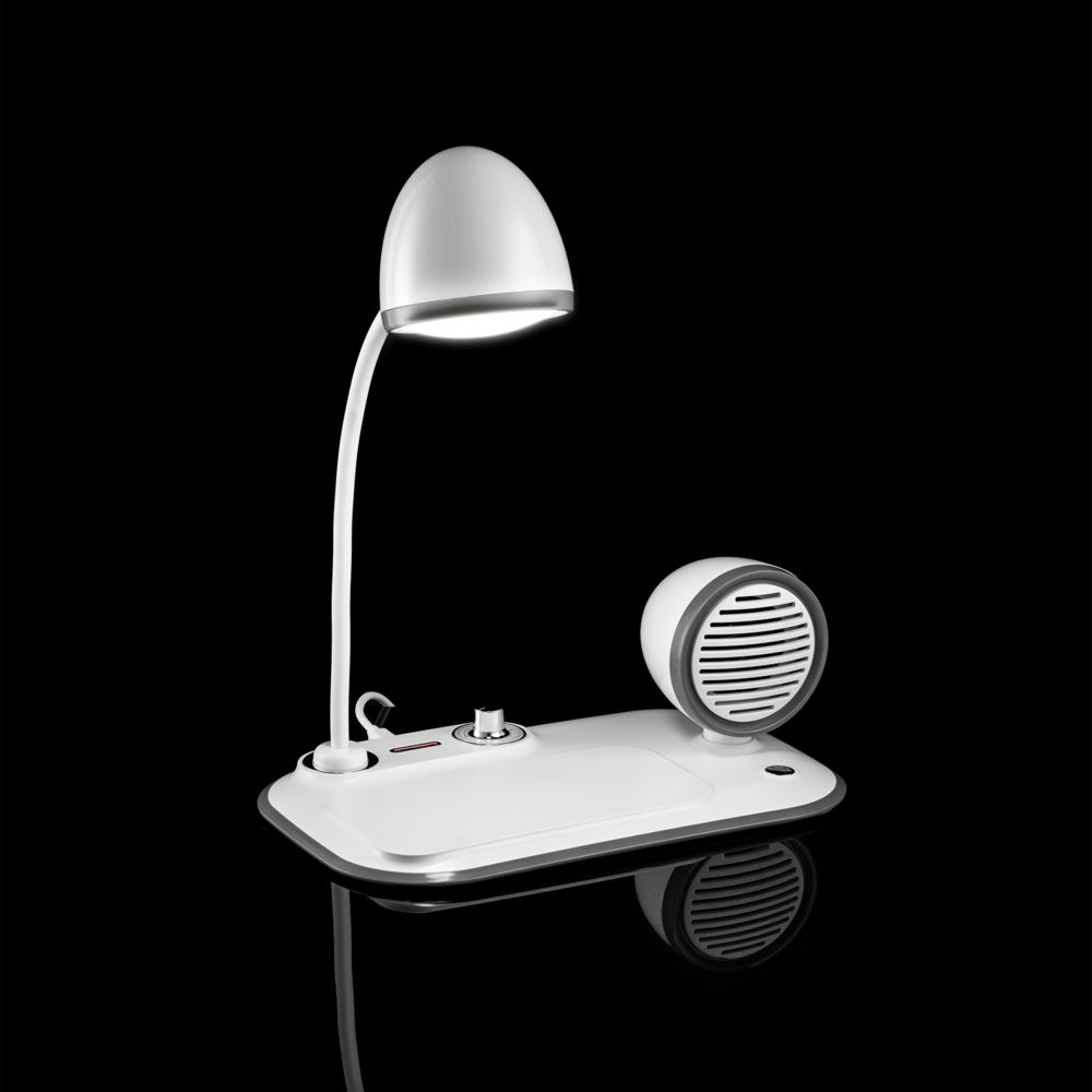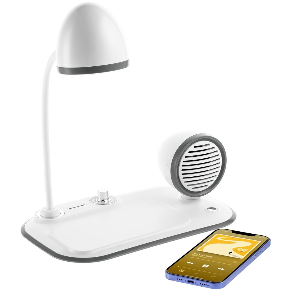 Лампа с колонкой и беспроводной зарядкой Flashback, белая
