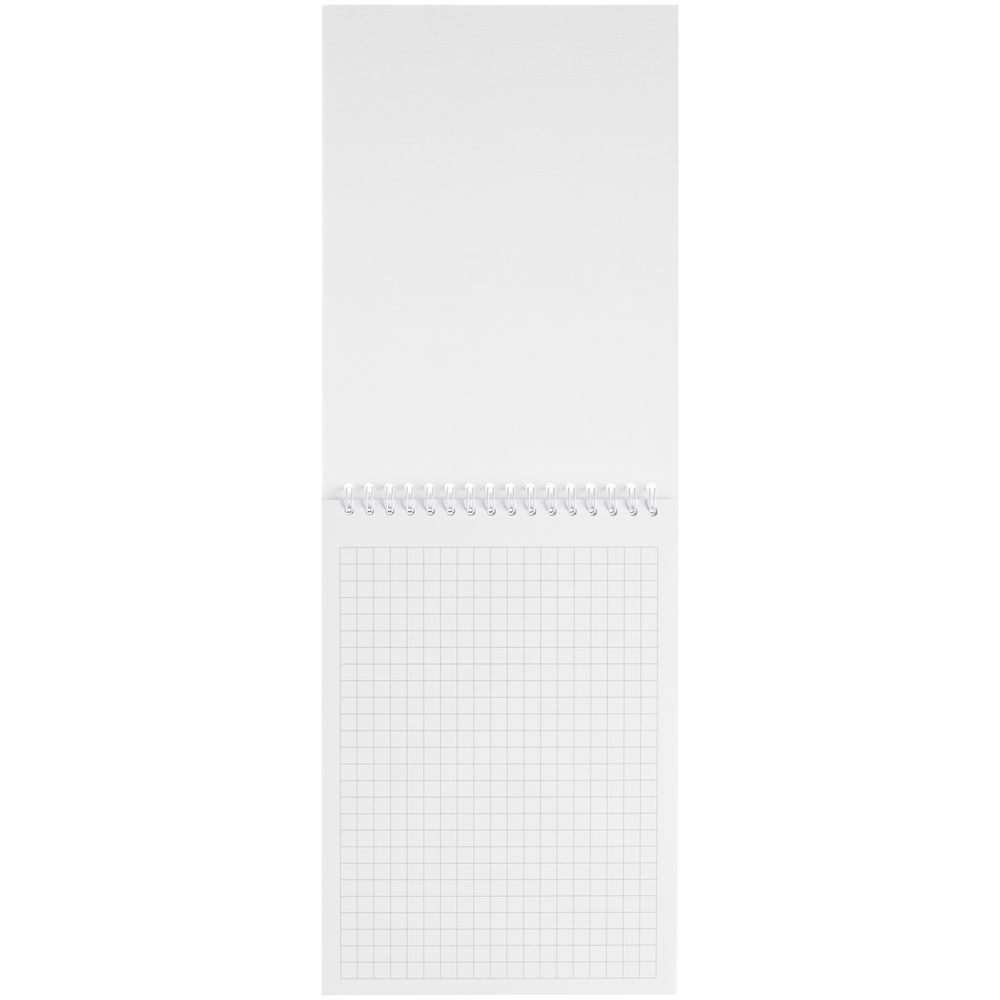 Блокнот на пружине с обложкой из белого мелованного картона плотностью 270 г/м² с покрытием софт-тач.