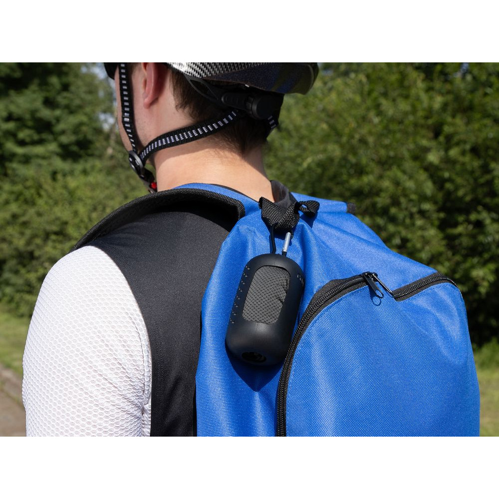 Упаковано в специальный силиконовый чехол с вентиляционными отверстиями, а при помощи карабина его можно прикрепить к рюкзаку, сумке или на пояс.