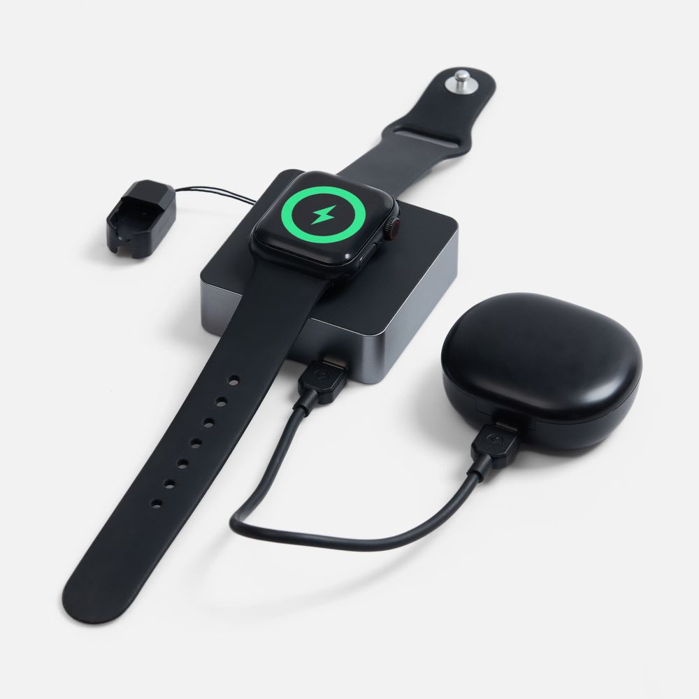 Aura Power совместим со всеми смартфонами, поддерживающими технологию беспроводной зарядки Qi. Также предусмотрено место для зарядки часов Apple Watch и наушников. Зарядка начнется автоматически при размещении устройств на индукционной площадке, единой для всех типов гаджетов. Устройства также можно заряжать при подключении по кабелю USB Type-C.